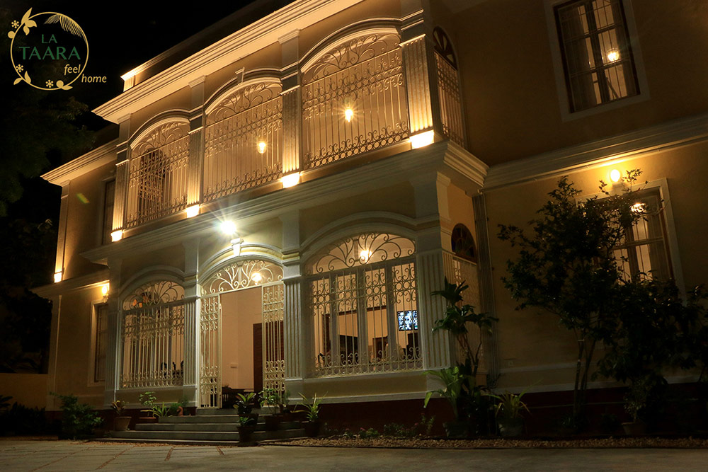La Taara is located 350 meters from the busy serenity beach at the outskirts of Pondicherry. This property was developed keeping in mind to utilise the nature to the maximum. The ceiling is high raised with tall windows to get adequate sunlight and aeriation. You have good greenery surrounding the building to take fresh breath and have a morning walk around within the campus.